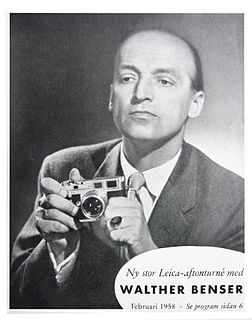 Walther Benser was a photographer, photo journalist and merchant from Germany. He traveled as a freelance photographer with a Leica camera, gave slide lecture tours and established the stock photo agency ZEFA. In 1989 he gave a presentation "Sixty Years with the Leka (sic) at the Leica Historical Society of America meeting in Philadelphia.