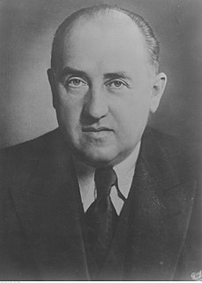 Walther Funk was a German economist and Nazi official who served as Reich Minister for Economic Affairs from 1938 to 1945 and was tried and convicted as a major war criminal by the International Military Tribunal at Nuremberg. Sentenced to life in prison, he remained incarcerated until he was released on health grounds in 1957. He died three years later.