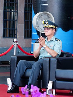 Yen Teh-fa is a Taiwanese politician and retired Admiral of the Republic of China Army. He is currently the Minister of National Defense. He was previously the Secretary-General of National Security Council. He was the Chief of the General Staff of the Republic of China Armed Forces from 30 January 2015 until 1 December 2016. He was the Vice Minister for Armaments of the National Defense Ministry (MND) from 9 August 2013 until 15 January 2014.