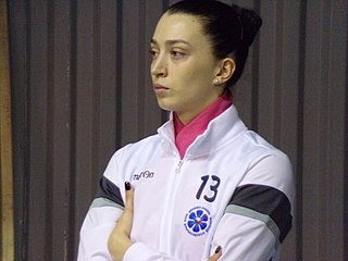 Evgeniya Olegovna Kanaeva OMF is a Russian individual rhythmic gymnast. She is the only individual rhythmic gymnast in history to win two Olympic all-around gold medals, winning at the 2008 Summer Olympics, where she finished with 3.75 points ahead of silver medalist Inna Zhukova, and at the 2012 Summer Olympics, where she also became the oldest gymnast to win the Olympic gold. On 4 July 2013, Kanaeva received the International Fair Play Award for "Sport and Life".