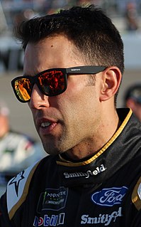 Aric Michael Almirola is an American professional stock car racing driver. He competes full-time in the NASCAR Cup Series, driving the No. 10 Ford Mustang for Stewart-Haas Racing. A graduate of Hillsborough High School in Tampa, Almirola attended the University of Central Florida to work on a degree in mechanical engineering before leaving to pursue a career in racing. His nickname is The Cuban Missile because of his Cuban heritage.