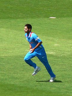 Bhuvneshwar Kumar Singh is an Indian international cricketer who plays all formats of the game. He plays for Uttar Pradesh in domestic cricket and for Sunrisers Hyderabad in the Indian Premier League. Kumar is a right-arm fast medium bowler who swings the ball both ways efficiently, with his inswingers more effective than outswing, especially adept at creating late swing, and a useful lower order right-handed batsman.